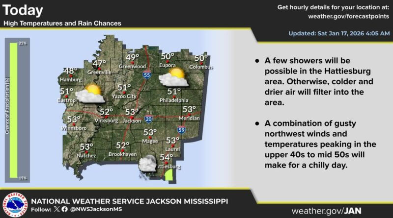 Colder and drier air will move into the region today following a cold front, according to the National Weather Service.