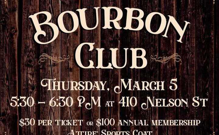 The Delta Bourbon Club will hold an event on Thursday, March 5, at Shogun House, located at 410 Nelson Street. The evening will feature a curated bourbon pour and light appetizers, from 5:30 to 6:30 p.m., according to organizers.