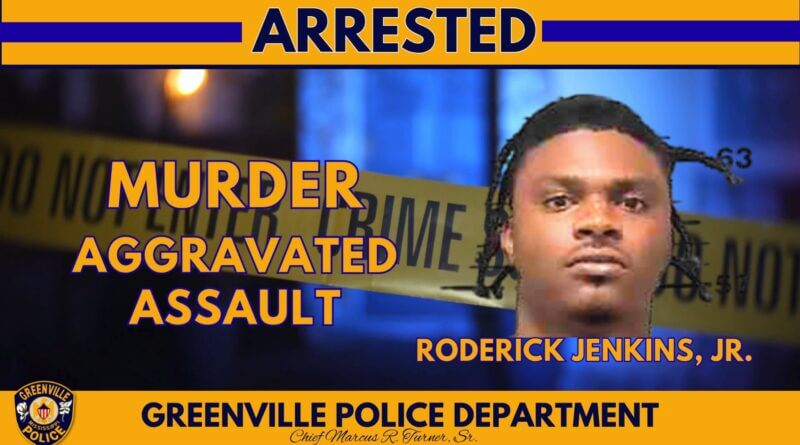 Following an investigation, detectives arrested Roderick Jenkins Jr., of Greenville. He is being held at the Washington Regional Correctional Facility pending his initial court appearance. Authorities have not released additional details about a possible motive or the circumstances leading to the shooting.