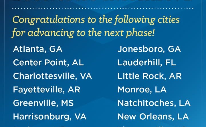 Other cities in this phase include Atlanta, Center Point, Alabama, Charlottesville, Virginia, Fayetteville, Arkansas, Harrisonburg, Virginia, Jackson, Mississippi, Jonesboro, Georgia, Lauderhill, Florida, Little Rock, Arkansas, Monroe, Louisiana, Natchitoches, Louisiana, New Orleans, and Thomasville, North Carolina, according to NLC.