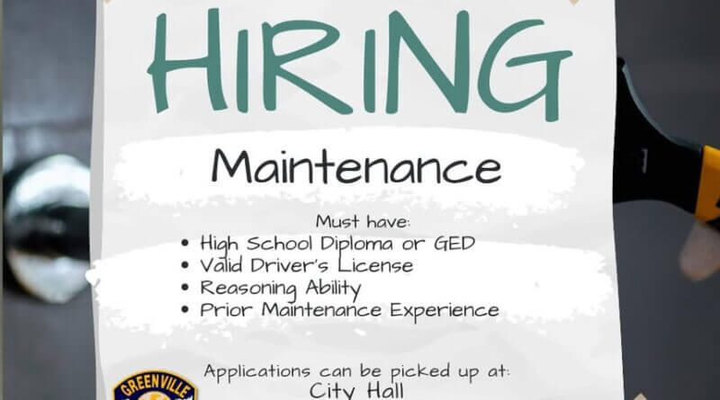 The Greenville Police Department is now accepting applications for a maintenance worker position, according to city officials.