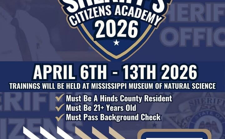 The Hinds County Sheriff’s Office has announced its 2026 Citizens Academy, scheduled to run from April 6 to April 13, 2026. The program will be held at the Mississippi Natural Science Museum, located at 2148 Riverside Drive in Jackson.