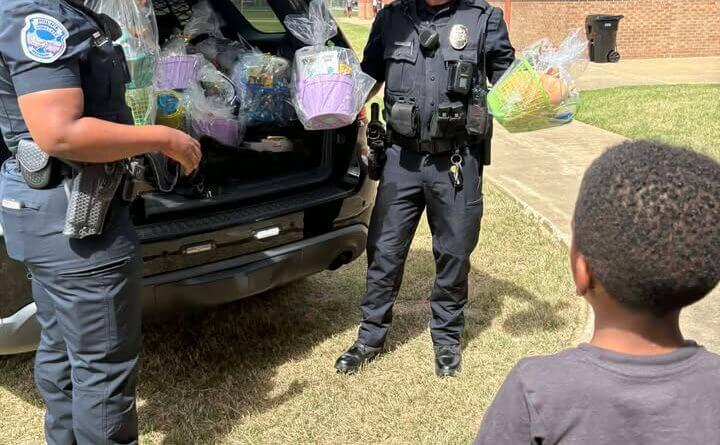 Officers said the surprise was part of their efforts to connect with local children and spread holiday cheer. The students received the baskets, which included treats and small gifts, ahead of Easter weekend.