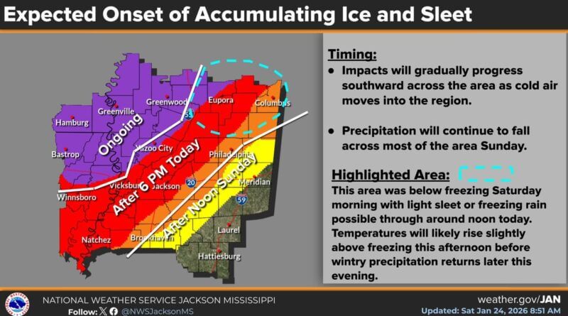 Officials provided an update on the ice storm timing based on observations from this morning. In the Golden Triangle area, weather reports indicate that precipitation may shift from sleet or light freezing rain back to plain rain as temperatures rise during the day.