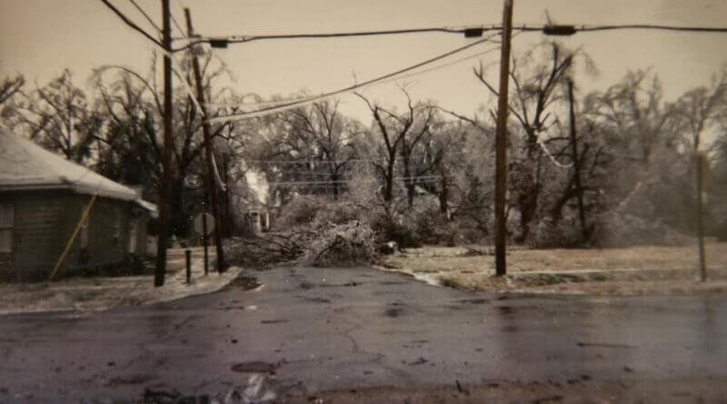 A photo from the 1994 ice storm shows downed power lines on Beatline Road and School Street, illustrating the storm’s impact. The storm caused widespread outages due to fallen trees and ice accumulation, according to reports from that time.
