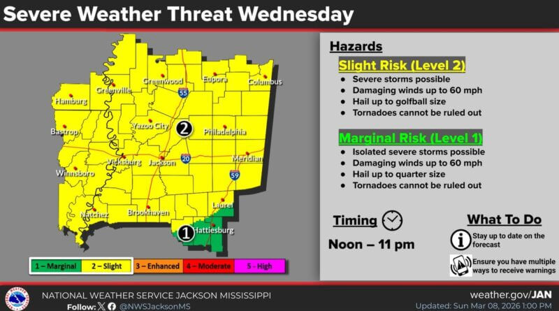 Severe thunderstorms are expected to develop Wednesday afternoon and evening, with the potential for damaging winds and hail up to the size of a golf ball, according to weather authorities.