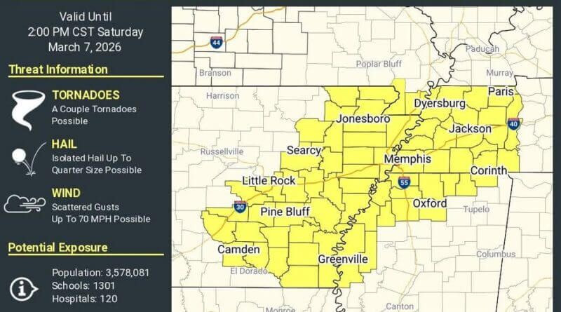 Severe Thunderstorm Watch Extended for Parts of Arkansas and Mississippi