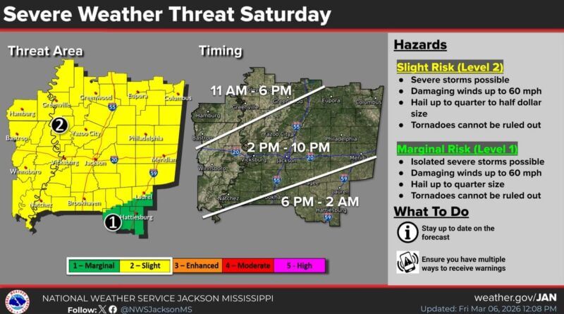 Severe thunderstorms are forecast to develop Saturday, primarily during the afternoon and evening hours, according to weather authorities.