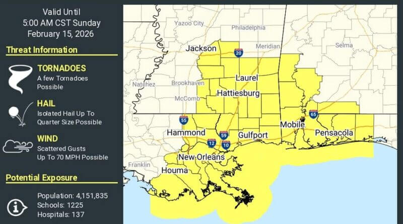 Emergency officials urge residents to review safety plans and seek shelter immediately if a tornado warning is issued.