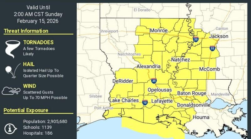 Tornado Watch issued for parts of Louisiana and Mississippi until early Thursday