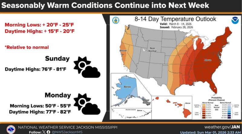 High temperatures are expected to be 15 to 20 degrees above normal, while lows will be 20 to 25 degrees higher than average.