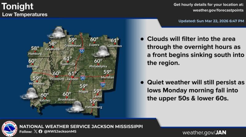Temperatures are expected to stay mild, with lows ranging from the mid-50s to low 60s. Winds may pick up in some spots, potentially causing localized gusts.
