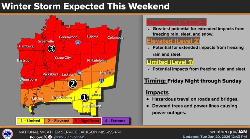 A winter storm is expected to bring a mix of precipitation to much of the region starting late Friday afternoon and evening, according to the National Weather Service in Jackson, Mississippi.